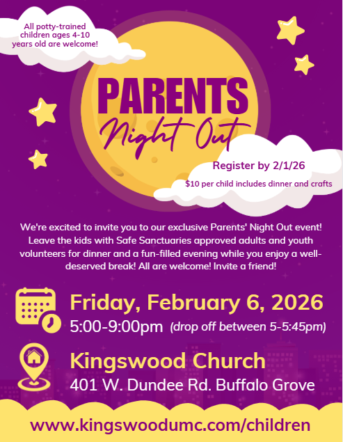 Kingswood Children's Ministry Mission Statement: We follow Jesus by loving God, serving others, and welcoming all children and families into a sacred, inclusive, and safe community where every child can explore faith and joyfully learn about God.