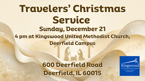 We are happy to introduce our new Travelers' Christmas Service this year. Celebrate Christmas with us early on Sunday, December 21, at 4:00 pm at our Deerfield campus before going out of town to visit loved ones. All are welcome!
