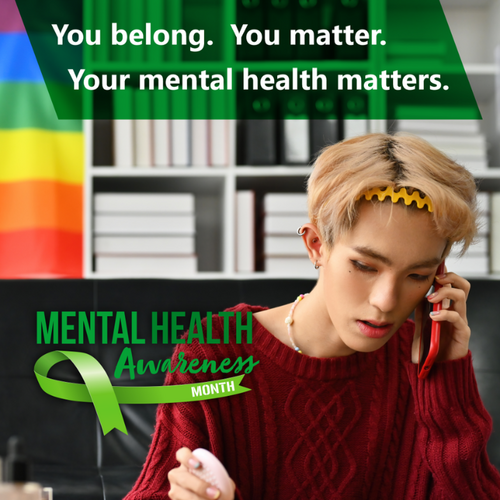 We celebrate the identities of LGBTQIA+ people. You belong. You matter. Your mental health matters. And you are not alone.