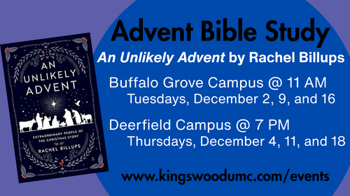 Join us for the Advent Bible Study as we journey through the book, An Unlikely Advent by Rachel Billups, and discover how God shows up in surprising, unexpected ways. Sign up today to prepare your heart for an Advent full of surprises!