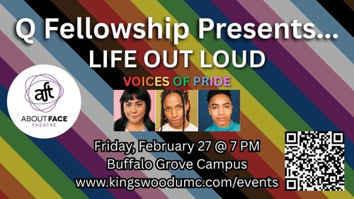 All are invited to a performance by About Face Theater, hosted by Q Fellowship of Kingswood UMC.