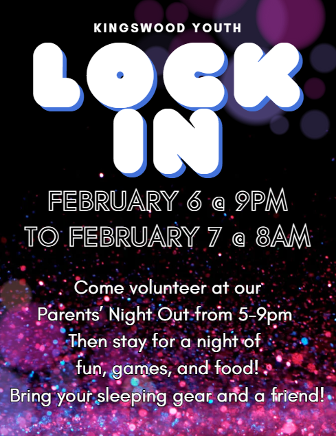 We’re taking over the BG campus after dark on February 6-7! Volunteer at Parents’ Night Out on 2/6/26 from 5:00–9:00 pm, then stay for the Youth Lock-In from 9:00 pm–8:00 am, no sign-up needed! Bring your sleeping gear, your friends, and get ready for an epic night of games, food, and fun you won’t want to miss!